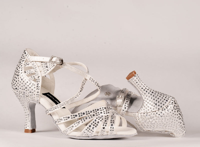 Tessuto: raso bianco e strass bianchi