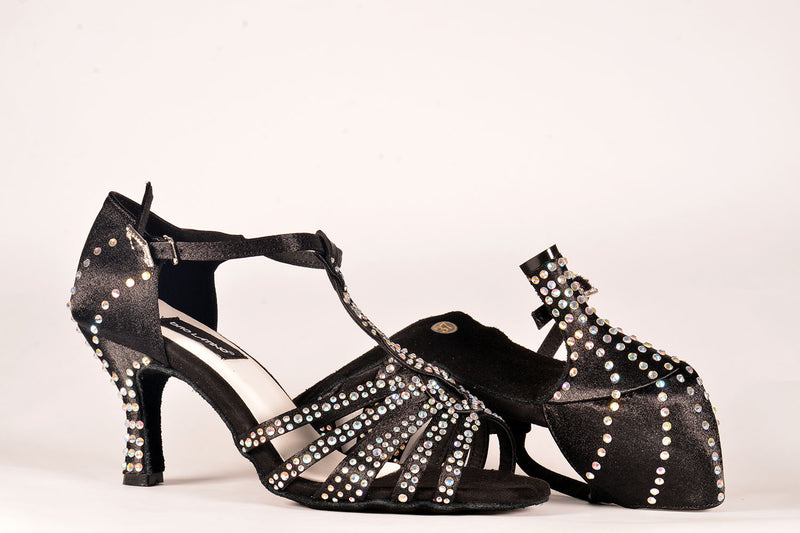 Tessuto: Raso nero con strass