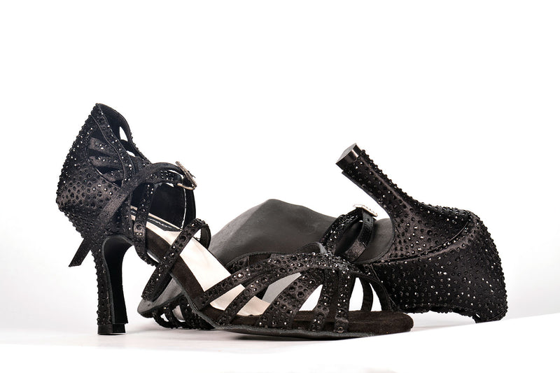 Tessuto: Raso nero con strass neri
