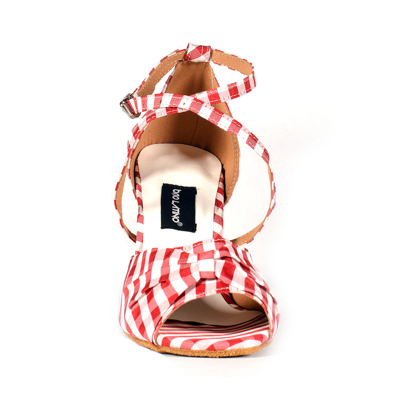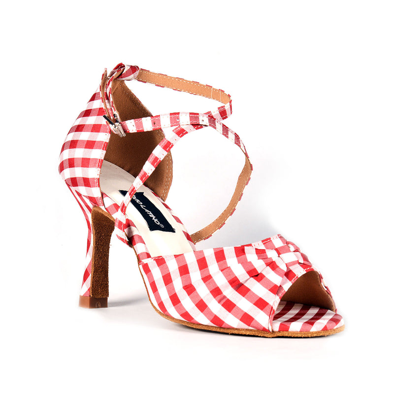 Pronte a sbizzarrirvi in pista con il nostro modello Country? Una scarpa da ballo accattivante con design a quadretti rossi e bianchi. Grazie al tacco rocchetto da 8.3 cm sfina le tue gambe e slancia la tua figura supportato da una comoda suola interna completamente scamosciata e dall’Intersuola Brio Latino in grado di attutire i colpi.